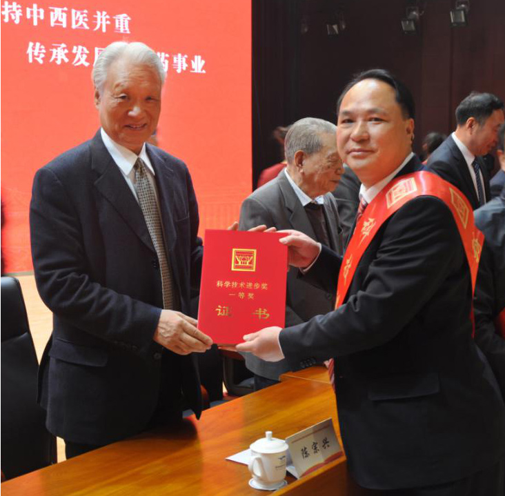 在本次大會上,由十一屆全國政協(xié)副主席陳宗興親自為廣西強壽藥業(yè)集團有限公司董事長李浪輝(獲獎項目完成第1人)頒獎。