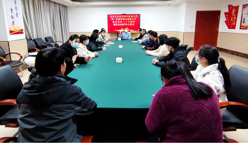 自治區(qū)藥監(jiān)局梧州檢查分局領(lǐng)導(dǎo)親臨廣西強壽藥業(yè)集團公司專題宣講黨的二十大精神并進行藥品GMP要點解讀